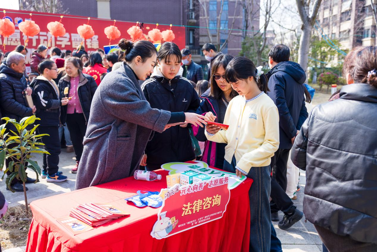 元心向善,志愿微光汇聚星河。党群集市另一侧,“曙”馨志愿服务区暖流涌动。“书香江畔”图书漂流摊前,居民用闲置书籍兑换环保帆布袋,50余本图书开启新旅程;“墨香江畔”展台前,书法爱好者挥毫泼墨,为居民书写“福”字与元宵主题画作,笔走龙蛇间传递美好祝愿。公安民警以案例讲解反诈知识,律师耐心解答法律疑问,银行工作人员普及金融安全常识,将实用服务送到居民“家门口”。