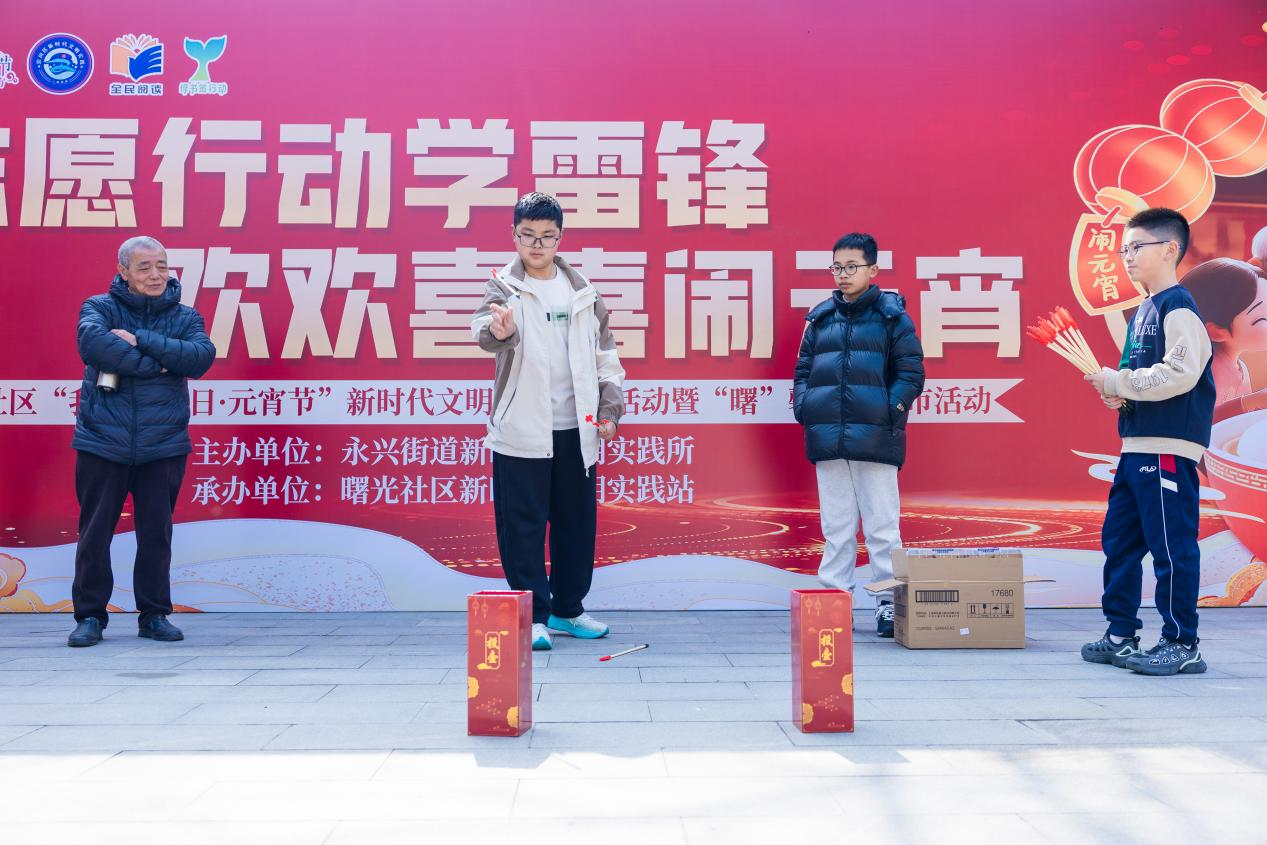 东风夜放花千树,江畔人潮闹元宵。2月28日下午,永兴街道曙光社区江畔花苑广场烟火升腾、喜气洋洋,曙光社区党委联合妇联、关工委开展“志愿行动学雷锋 欢欢喜喜闹元宵”新时代文明实践暖新春主题活动暨“曙”馨“党群集市”火热启幕。百米灯廊流光溢彩,民俗摊位香飘四溢,志愿服务暖意融融,百余名居民共赴这场传统与现代交织、温情与欢乐并蓄的元宵之约。