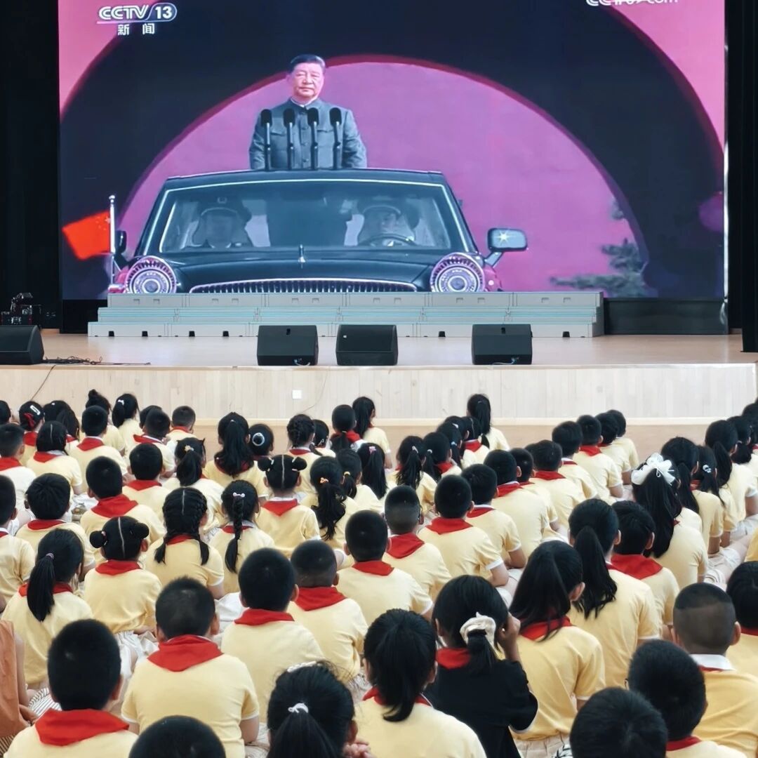 活动回顾活动在庄严的阅兵仪式中拉开帷幕。当威武的受阅方队迈着铿锵有力的步伐走过屏幕,当“听党指挥、能打胜仗、作风优良”的嘹亮口号响彻体育馆,孩子们纷纷屏息凝视,小脸上写满庄重与自豪:有的悄悄挺直了腰杆,有的紧紧握紧了小拳头,仿佛亲身置身于庄严肃穆的阅兵现场。这一刻,强国强军的现实画面深深震撼着每一颗幼小的心灵,也为整场活动奠定了肃穆而激昂的情感基调。随后,温馨感人的一幕将现场气氛推向高潮。少先队员代表缓步走向何伟爷爷,郑重地向他行队礼。孩子们首先为何爷爷系上鲜艳的红领巾,随后将饱含敬意的鲜花献到英雄手中。红领巾在英雄胸前格外耀眼,鲜花映照着孩子们纯真的脸庞,何爷爷眼中泛起慈祥而欣慰的光芒,与孩子们亲切交流,现场洋溢着温情与感动。不忘初心 牢记使命在孩子们期待的目光中,“孤胆英雄”何伟爷爷以“老山精神”为核心展开动人讲述。作为全军英模报告团成员,他结合对越自卫反击战的亲身经历,用“艰苦奋斗、无私奉献、团结协作、英勇顽强”十六字精准诠释了老山精神的深刻内涵。从炮火纷飞的战场环境到战友间生死相托的深厚情谊,从极端条件下坚守阵地的执着到“宁可前进一步死,决不后退半步生”的铮铮誓言,何爷爷用一个个真实鲜活的案例,生动再现了军人保家卫国时的坚定信念与无畏牺牲精神。