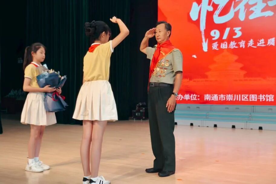 台下的孩子们始终专注聆听,眼中闪烁着感动与崇敬的光芒,每当讲到动情之处,现场便响起热烈而真挚的掌声,回应着英雄的赤诚讲述。何爷爷口中战火纷飞的过往与先前观看的强国画面形成鲜明呼应,让孩子们更加深刻地理解了“先辈牺牲换今朝和平”的意义。此次活动的成功举办,为青少年爱国主义教育注入了鲜活而厚重的力量。未来,崇川区图书馆将持续聚焦红色基因传承,以更丰富多元的形式深化爱国主义教育实践,通过整合优质资源、创新活动载体,面向青少年开展多样化的红色主题活动,引导孩子们在沉浸式体验中感悟历史、汲取精神养分,让红色精神在新时代青少年心中生根发芽、代代相传,激励他们以更昂扬的姿态成长为担当民族复兴大任的时代新人。