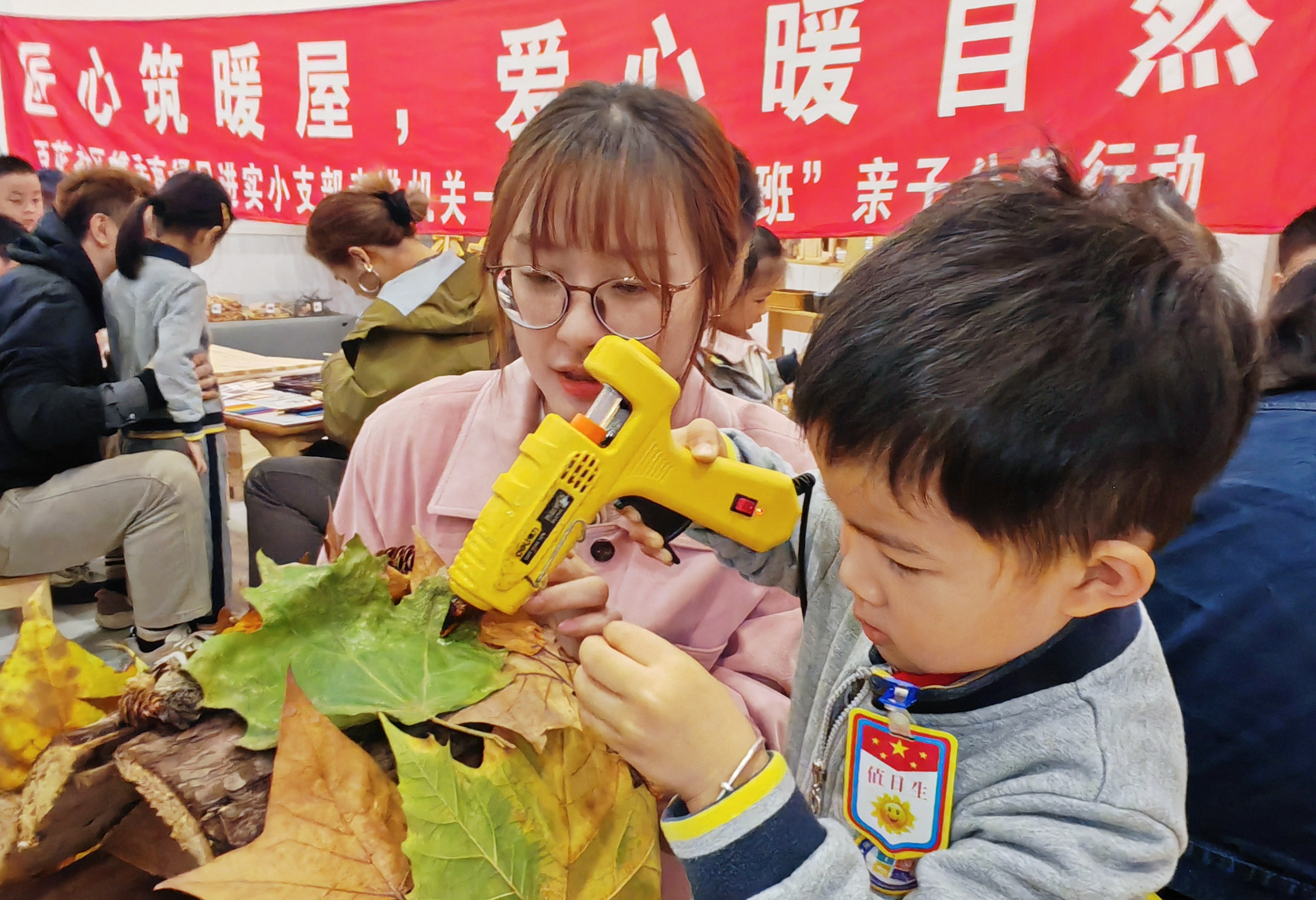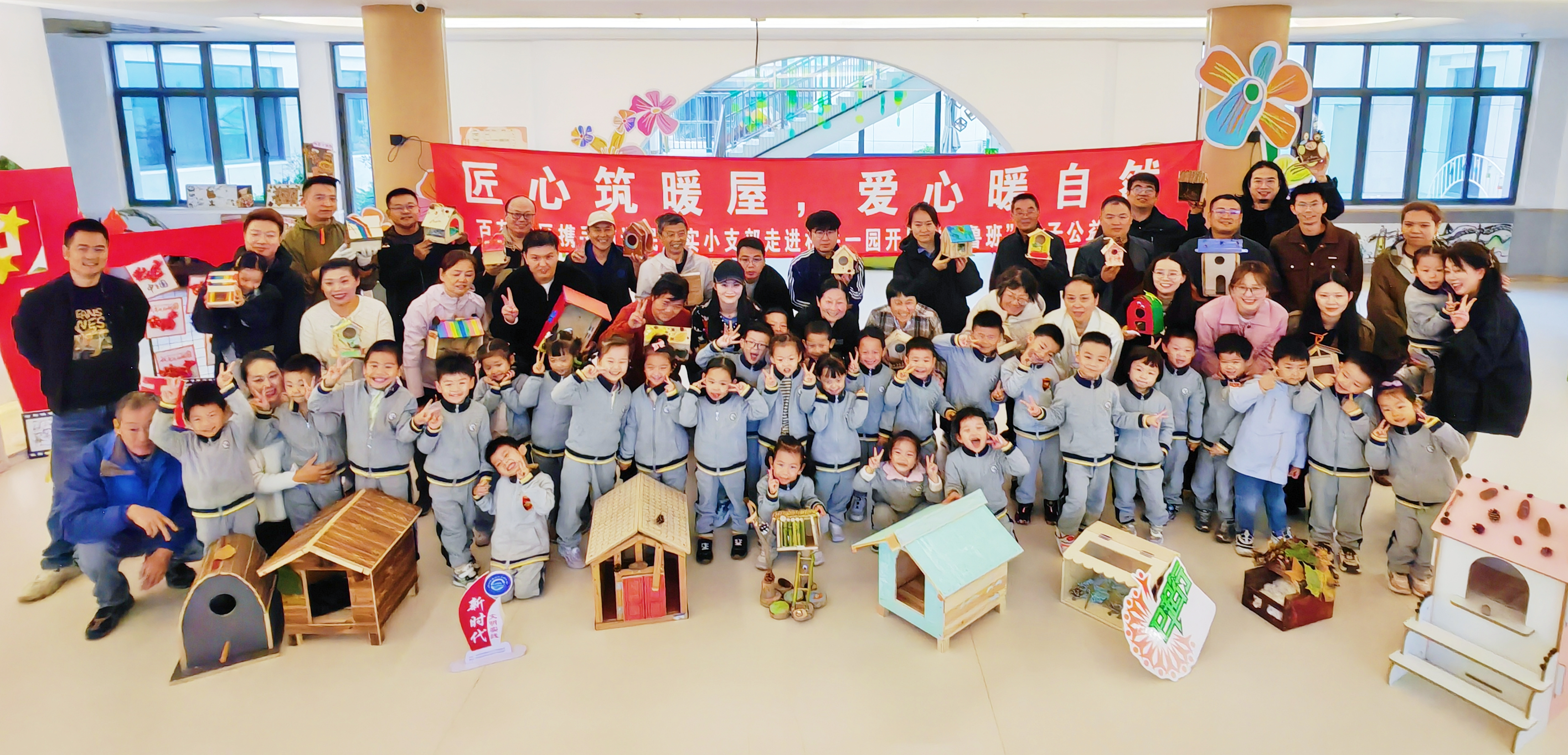 10月21日上午,和平桥街道百花苑社区新时代文明实践站、关工委、妇联联合南通民进实小支部,走进市级机关第一幼儿园,共同举办了一场富有创意与温情的“匠心筑暖屋,爱心暖自然”——“小鲁班”亲子公益行动。活动旨在通过亲身体验,将生态保护意识与公益爱心播撒进亲子家庭,同时凝聚多元力量,为社区治理注入新活力。