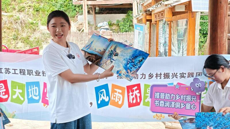 公益行期间,志愿者还组织了风雨桥读书会,侗娃们在侗族民间故事绘本《找金鸡》里找到了自家银饰上的花纹、村口鼓楼的建筑和风雨桥上的木雕花。“这是讲述我们自己的故事!”孩子们兴奋地说。