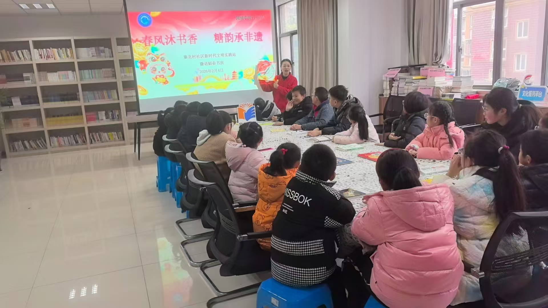 2026年2月4日,崇川区秦灶街道秦北村社区新时代文明实践站、关工委携手微语韬奋书房,为社区少年儿童精心打造了一场以“春风沐书香·糖韵承非遗”为主题的新春文化盛宴,将传统年味与童趣体验巧妙融合。