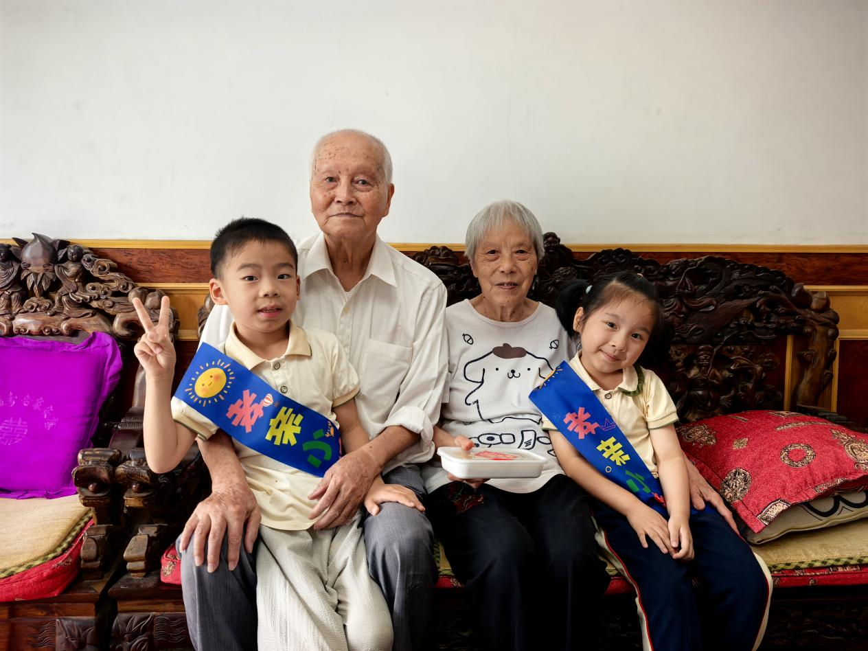 活动以“仪式化、沉浸式”设计分三个核心环节推进。开篇“孝亲拜师”仪式上,8位社区五老受邀担任“孝德导师”,小朋友身着整洁服装行“拱手礼”,老人为孩子逐一佩戴“孝亲小使者”丝带,社区工作人员还结合短视频讲解重阳节“登高、赏菊、敬老”习俗及“子路负米”的敬老故事;随后“暖心陪伴”实践仪式中,孩子们分室内组与“孝德导师”面对面互动、上门组在志愿者带领下为老人捏肩捶背并送上关爱慰问;最后“孝语传情”分享仪式环节,孩子们争相分享活动感悟,老人们则带“老物件”讲述年轻时的生活故事。